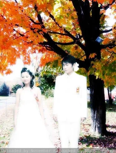 给人物换一个好看的背景 美化人物脸部 基调:典雅唯美 艺术化:轻微艺术化 (只要新郎新娘就好……)