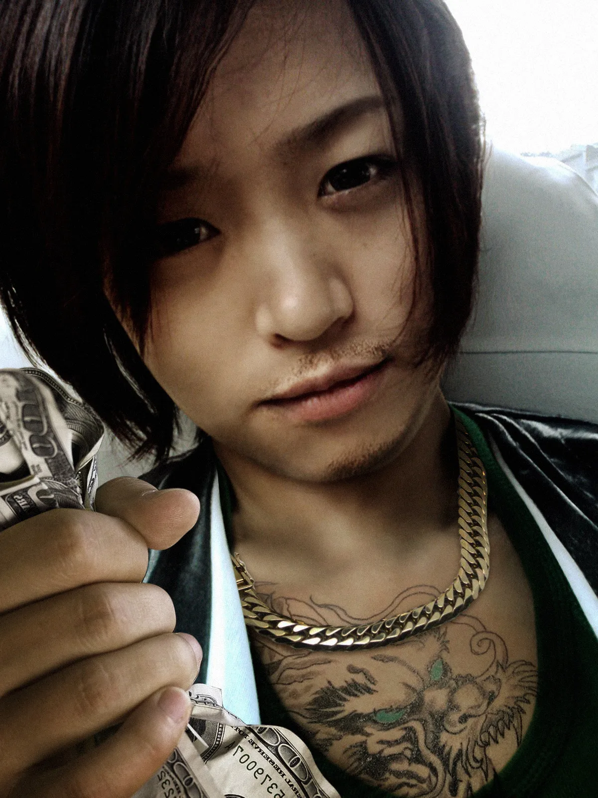 哈~~~还文身。那项链够粗,我喜欢~~有钱就是爷~~