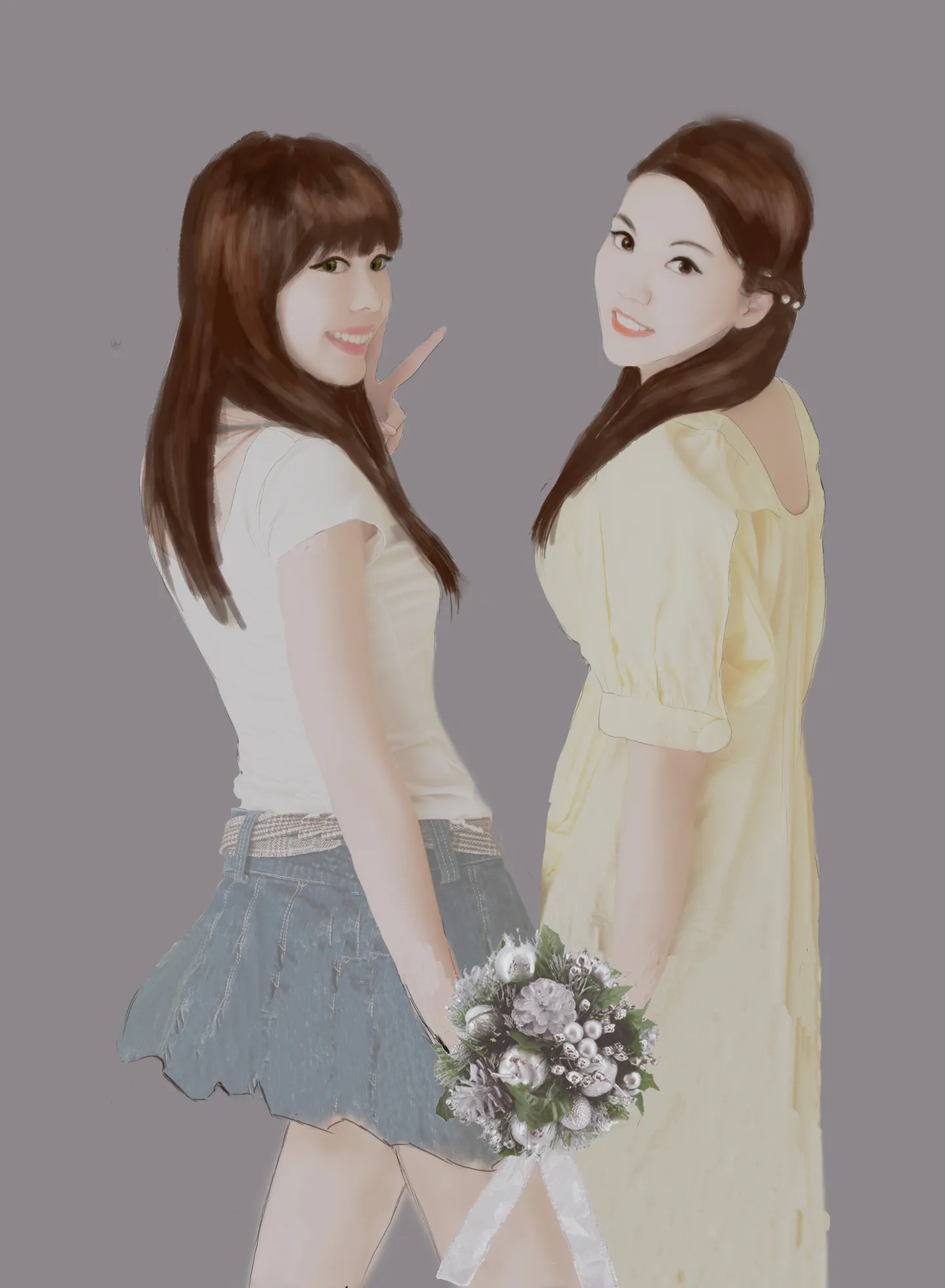 亲画的姐妹照好棒!能帮我们也画一张吗?非常感谢!