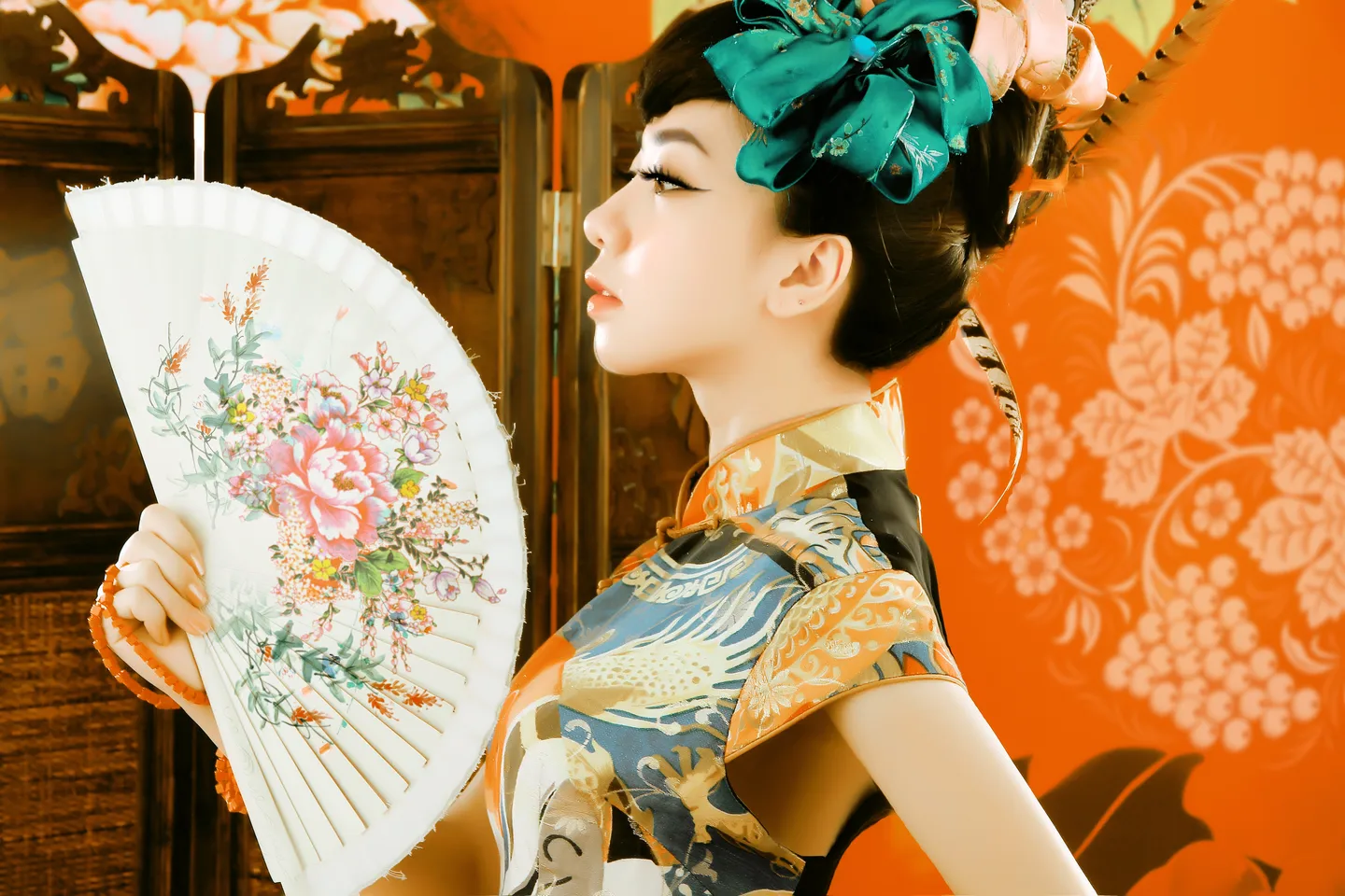 扇面和背景的花纹加得很好看