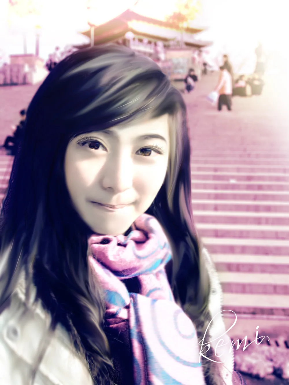 艺术化:深度艺术化 基调:典雅唯美 美化人物脸部 给人物换一个好看的背景 期待期待~^_^
