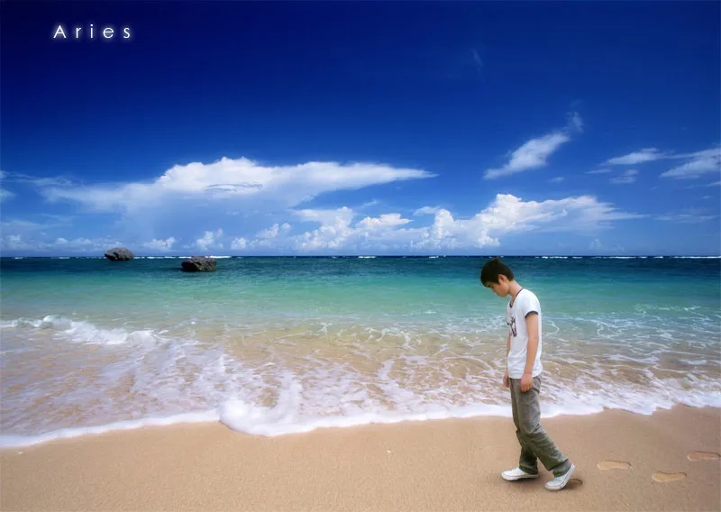 背景换成海滩效果 整体效果真实人物白些 看着整就可以啦 谢谢 加上Aries我的英文名