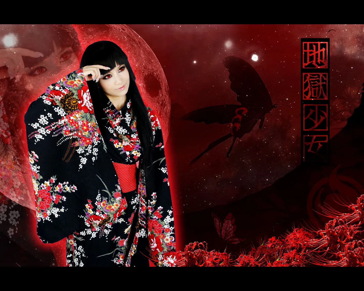 COS的地狱少女~眼睛变红色~换背景~看过地狱少女动漫的大师接~~~谢谢~ 艺术化:保持真实性