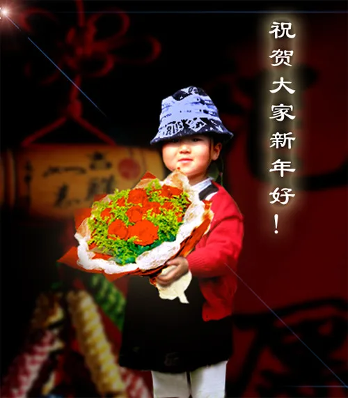 换个背景,手里捧个鲜花,祝贺大家新年好,此图非常重要,希望尽快修好,谢谢