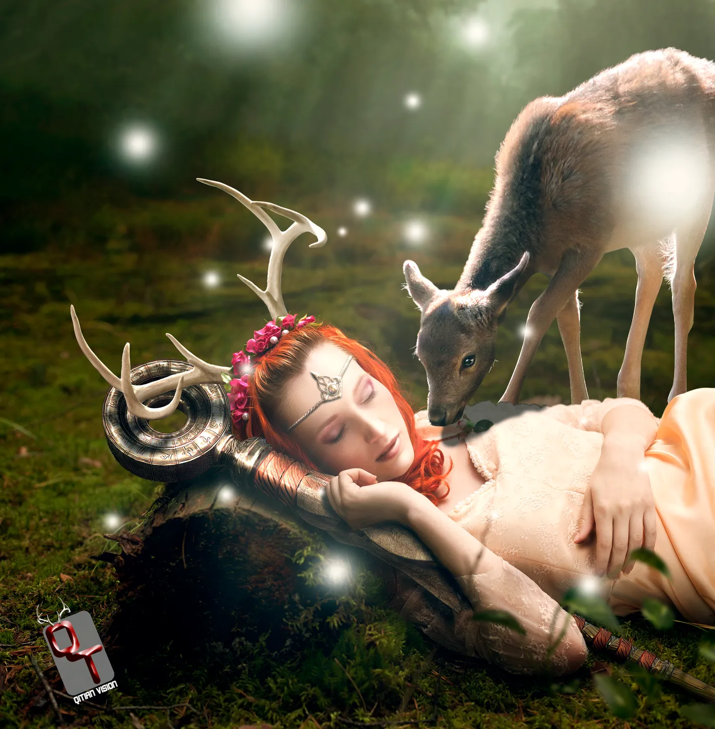 =。= 你们这些只关注卖萌的家伙,那只小鹿明明是想趁美女睡着的时候叼走那根项链来着