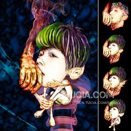 原本的构图想法是黑幕中N只大大小小的手伸过来包围着。。。。。悲哀的是调好不同角度的手的光线后。。。发现对此种类型的背景气氛制作几乎是白痴。。。。。。遂放弃。。