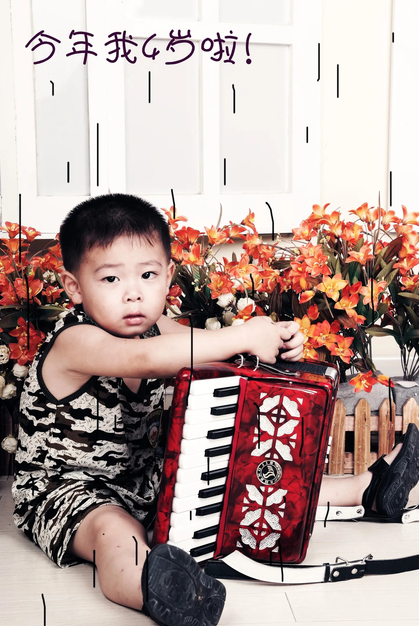 美化人物脸部 换一个好看的背景 写上今年四岁的意思的话