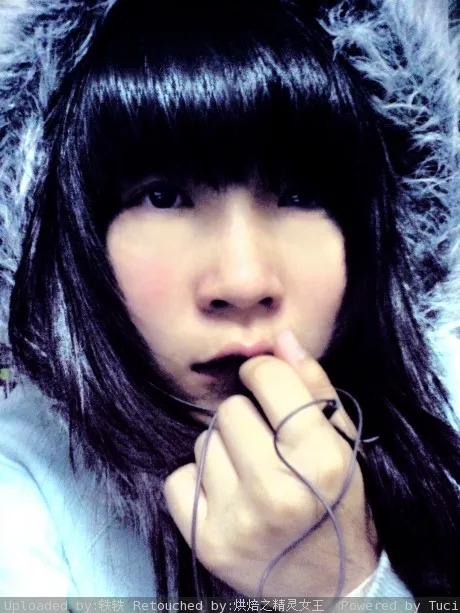 希望能帮我把眼睛P成深蓝色的,去除眼袋皱纹,头发不要模糊化带点紫色深紫色,美化脸部,保持真实性,要求有点多,先谢谢啦~