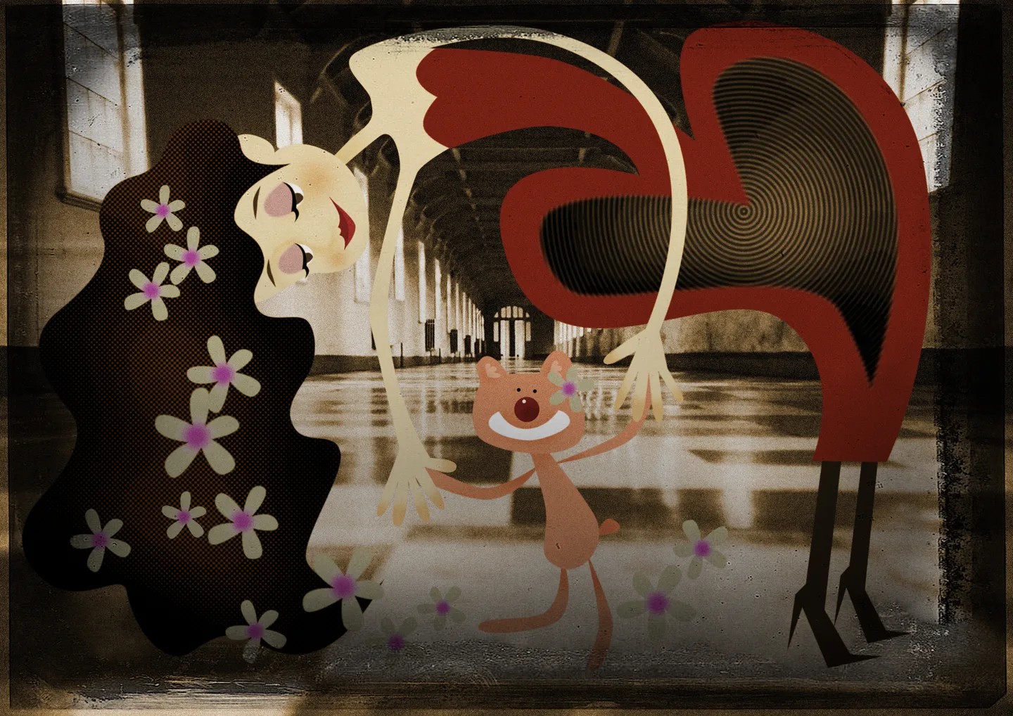 嗯~~~~~~~我觉得比较适合画一张 q版的 哇咔咔 小熊跟红裙子
