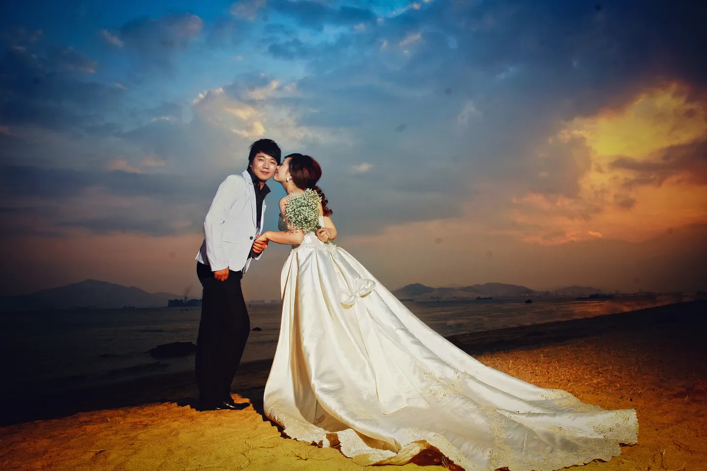 这张要做册子封面滴,希望有爱的大师给修得唯美自然些哦,尤其是天空和海,拍摄的时间有点晚,所以天色不好,显不出蓝天白云碧海,个人比较喜欢白天一点的效果,很灵动清新的感觉哈,如裙摆的小飘逸什么的,希望有些小小的惊喜哦,谢谢大师的用心哈