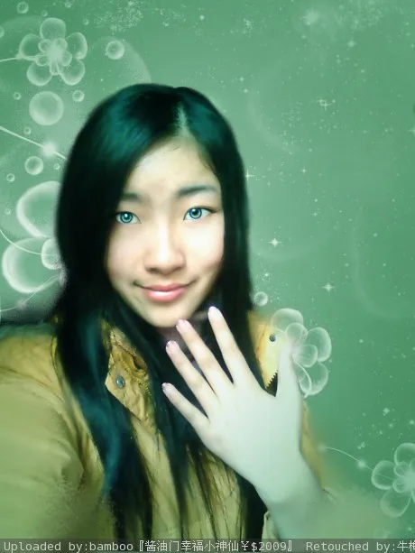 眼睛大一点,睫毛长一点,脸小一点,黑眼圈去掉,着重眼睛的刻画,整体风格要唯美清纯,细节部细腻,手指细一点,头发最好可以加一点光泽,能不能再手绘一些啊?背景全部换掉,换成清楚一点的,最好有点主题。 。。总之很期待啊。。。。请一定要帮我忙啦。。。万分感谢啊。。。 用途:娱乐 基调:典雅唯美 艺术化:深度艺术化