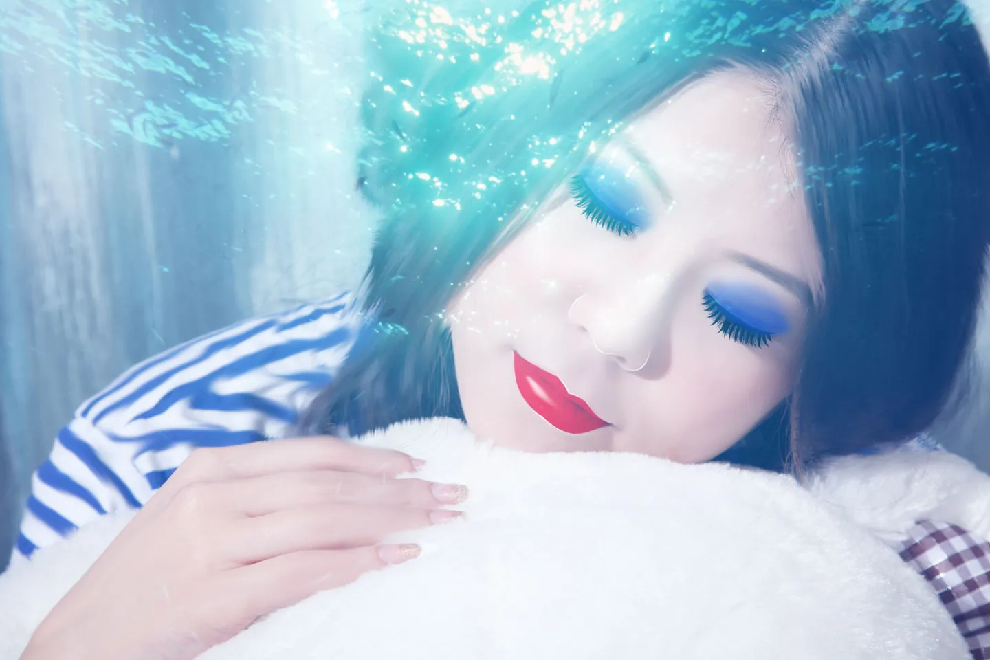 美化人物脸部 细节求修:额头上的头发,双眼皮贴,法令纹,眼下雀斑 下嘴唇的形状,面部皮肤和嘴唇的唇纹 艺术化:轻微艺术化