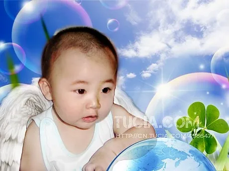 这是我儿子9个月时的一张居家照,希望设计师能调整照片光线不足的缺憾,另外能够给我儿子一个卡通的背景,最好能体现出充满童稚的环境,谢谢您! 基调:欢悦明快的 用途:家庭纪念 艺术化:轻微艺术化
