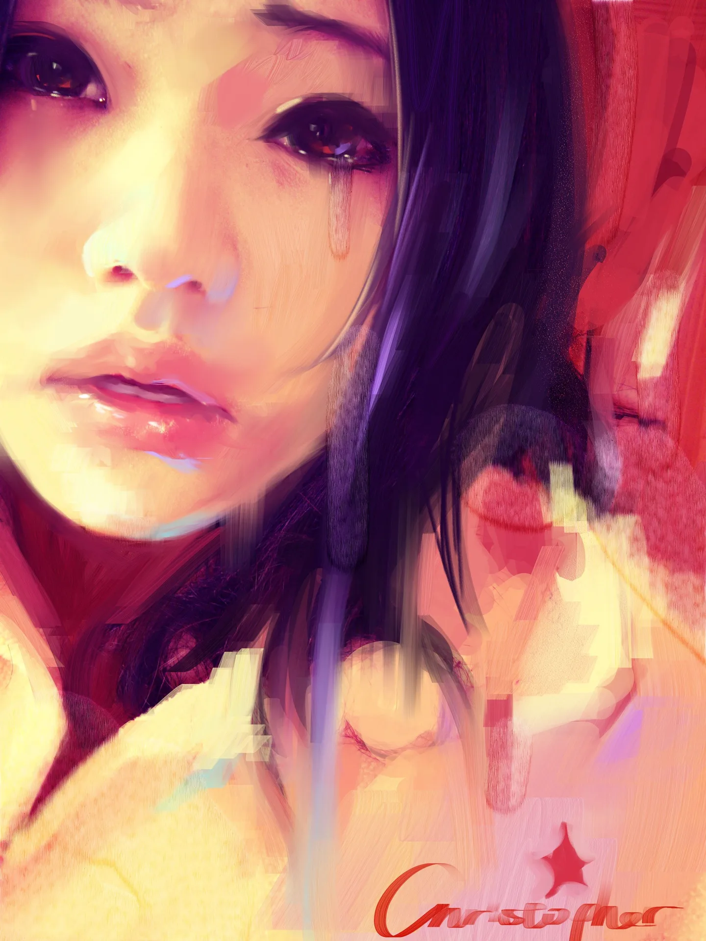 眼睛水旺旺的好传神啊,厉害。不过流下来的那滴就不太好了,有点像蜡,呵。