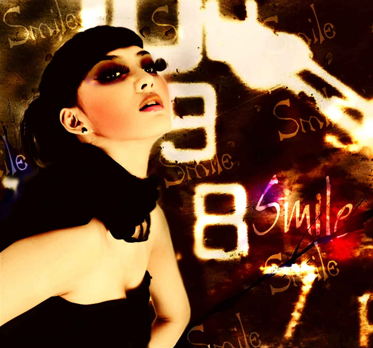 我想要突出人物,做的非主流一些,添加个背景。 艺术化:深度艺术化 基调:典雅唯美 加上字:Smile
