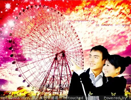 短短~~~短短 帮我再做张吧~~ 记得你答应我的心形的小泡泡哦~ 呵呵 希望加上个摩天轮或者旋转木马之类的绚丽点的背景吧~~ 我手指着他看 我乖乖等图了哦~~