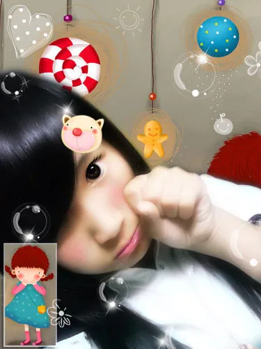 可爱点。嘴巴粉粉的。背景换掉。看着给人第一感觉很可爱就好