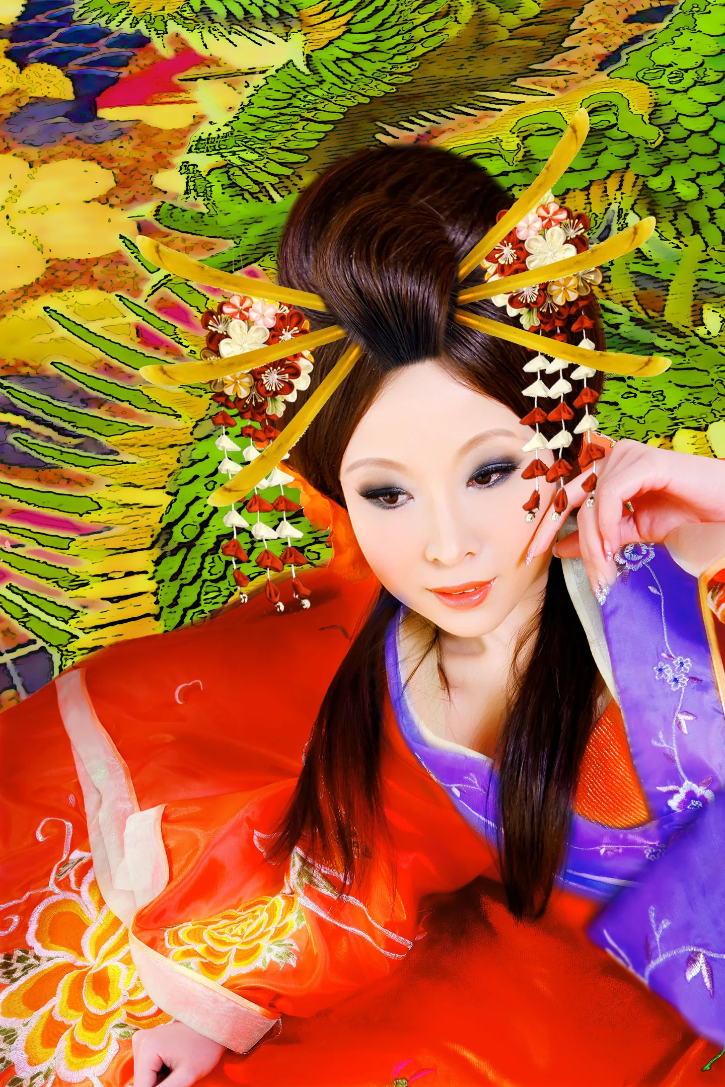 类似恶女花魁那种艺妓妆,美化身材 合成一个好看的背景