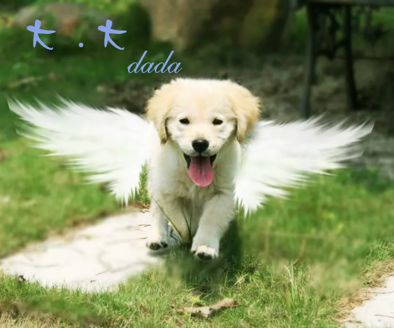 请帮忙加个翅膀。 如果写字的话,这只狗叫做“大大” 谢谢!