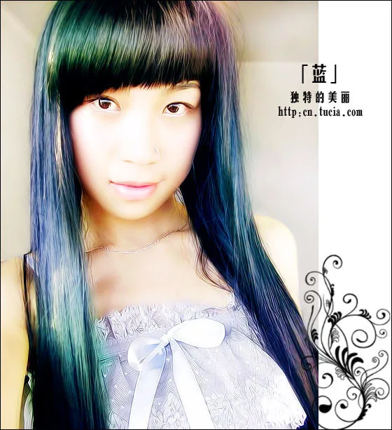 发丝尽绚丽 撩动春色无边.蓝其实并无特别,出众的是辛苦的媛媛,谢谢媛媛.