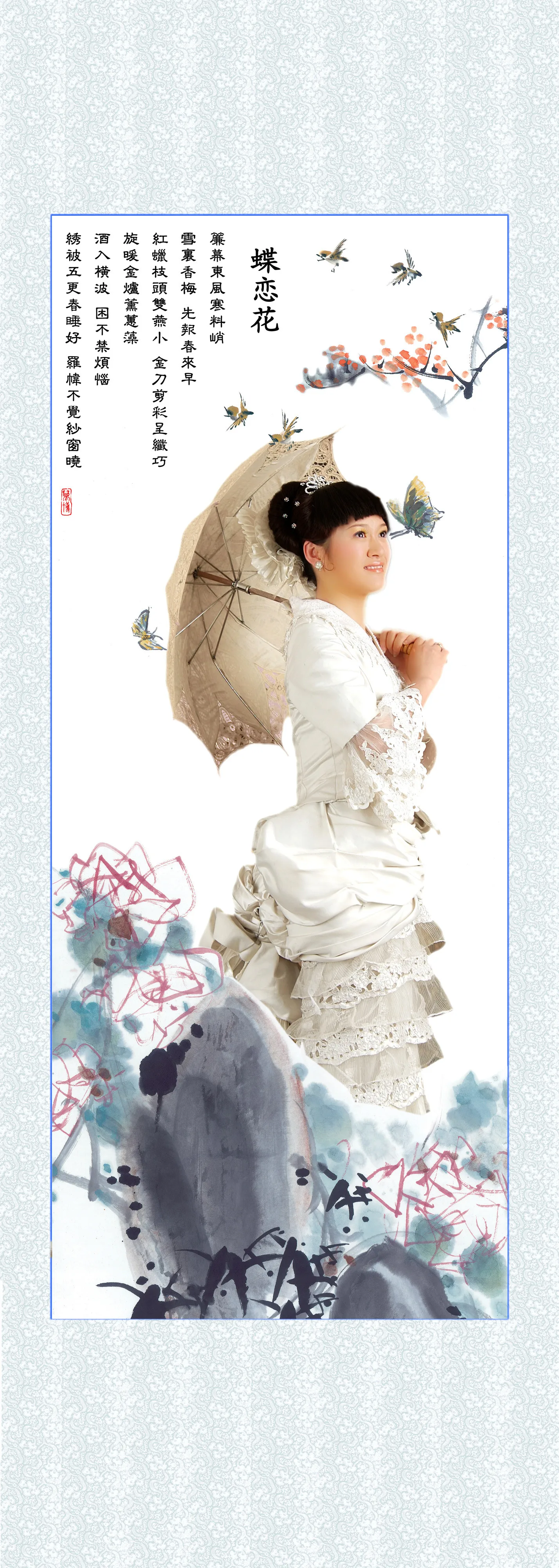 帮忙把背景改一下啊,地上的纱不要,肤色调亮一点 用途:家庭纪念 基调:典雅唯美