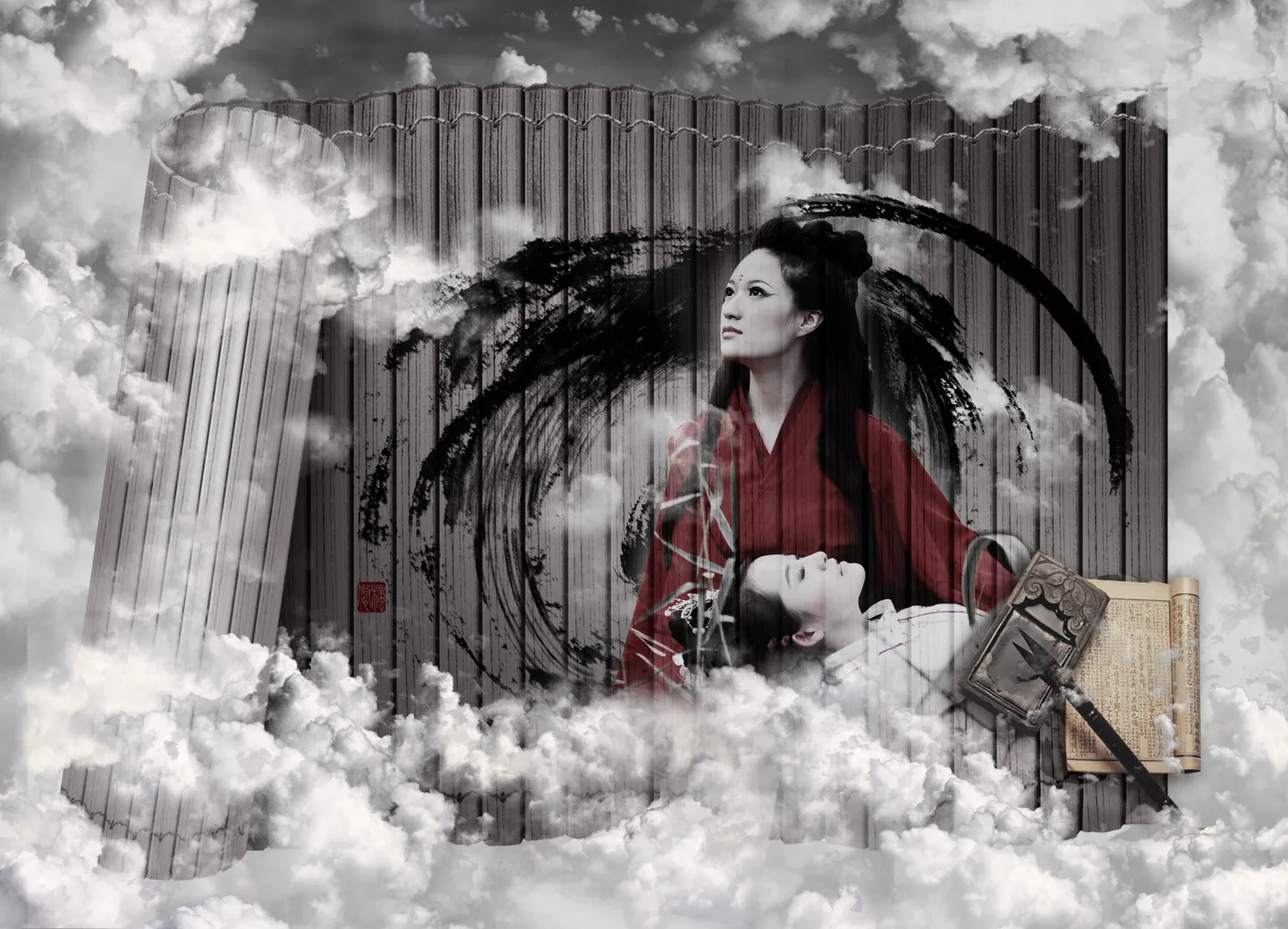 建议很不错,可以用水墨画的云~