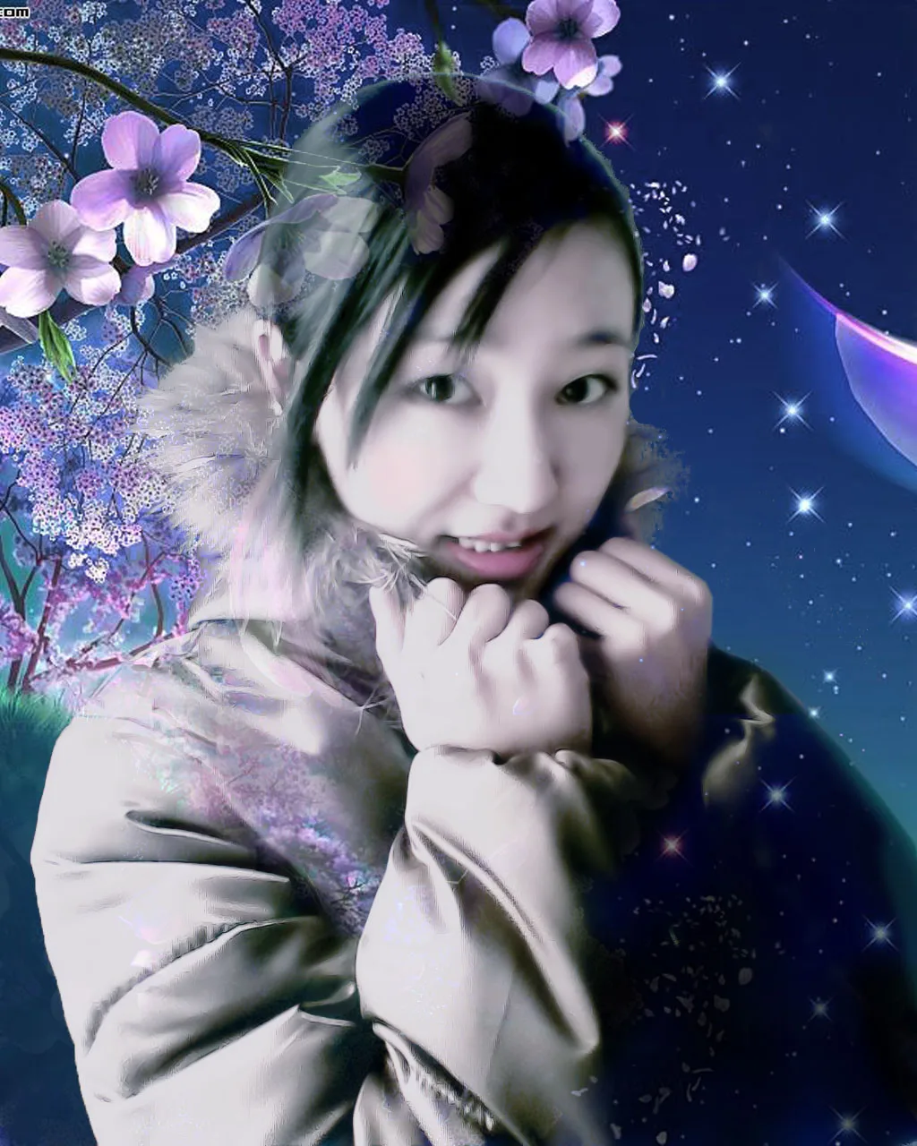 1,我觉得面色过于苍白没有血色。2,嘴唇颜色太暗淡。3,眼睛轮廓也不太清楚,希望能黑一点。4,照片也缺乏艺术效果。5,还有背景可否帮我换一个漂亮一点的?例如满天繁星之类的o(∩_∩)o...