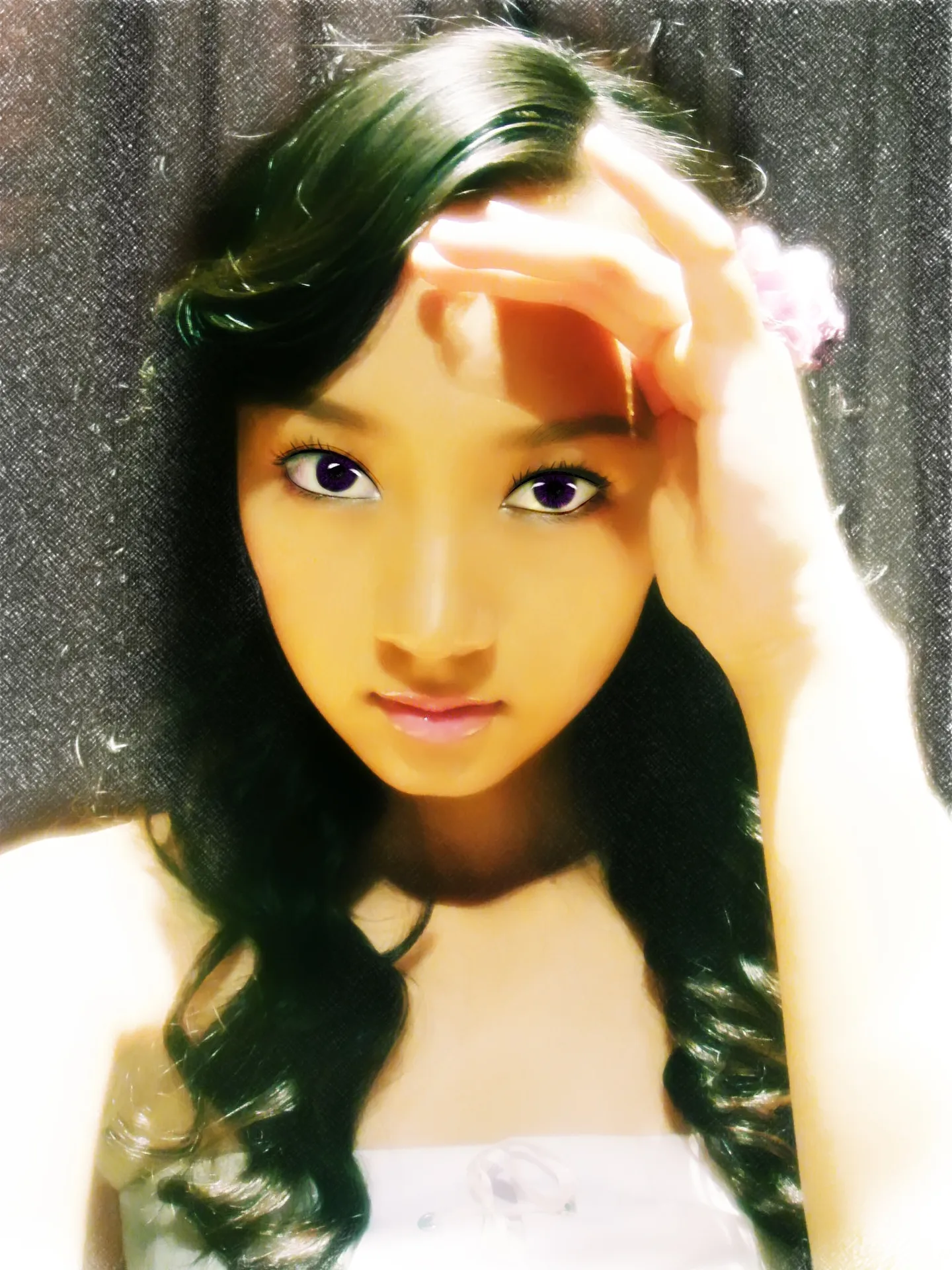 希望脸亮一点,嘴唇不要那么亮,可以的话眼珠的颜色变一下,紫色的,就像黑执事里面的契约之眼~