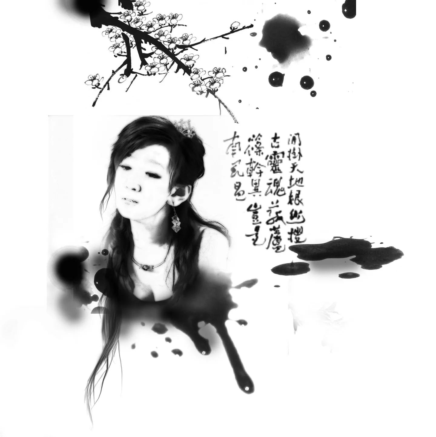 水墨风!!漂亮,就是有个小缺点,好像人物图层的边框若隐若现呀!!可能是显示器的原因吧,^_^