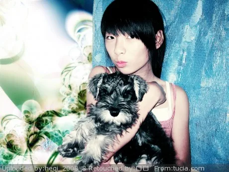 肤色改白些,人和狗都可以可爱些,还有背景也要改些。剩下的,大师可以自己看着改改,谢谢。。 基调:欢悦明快的 艺术化:深度艺术化 背景:朦胧化