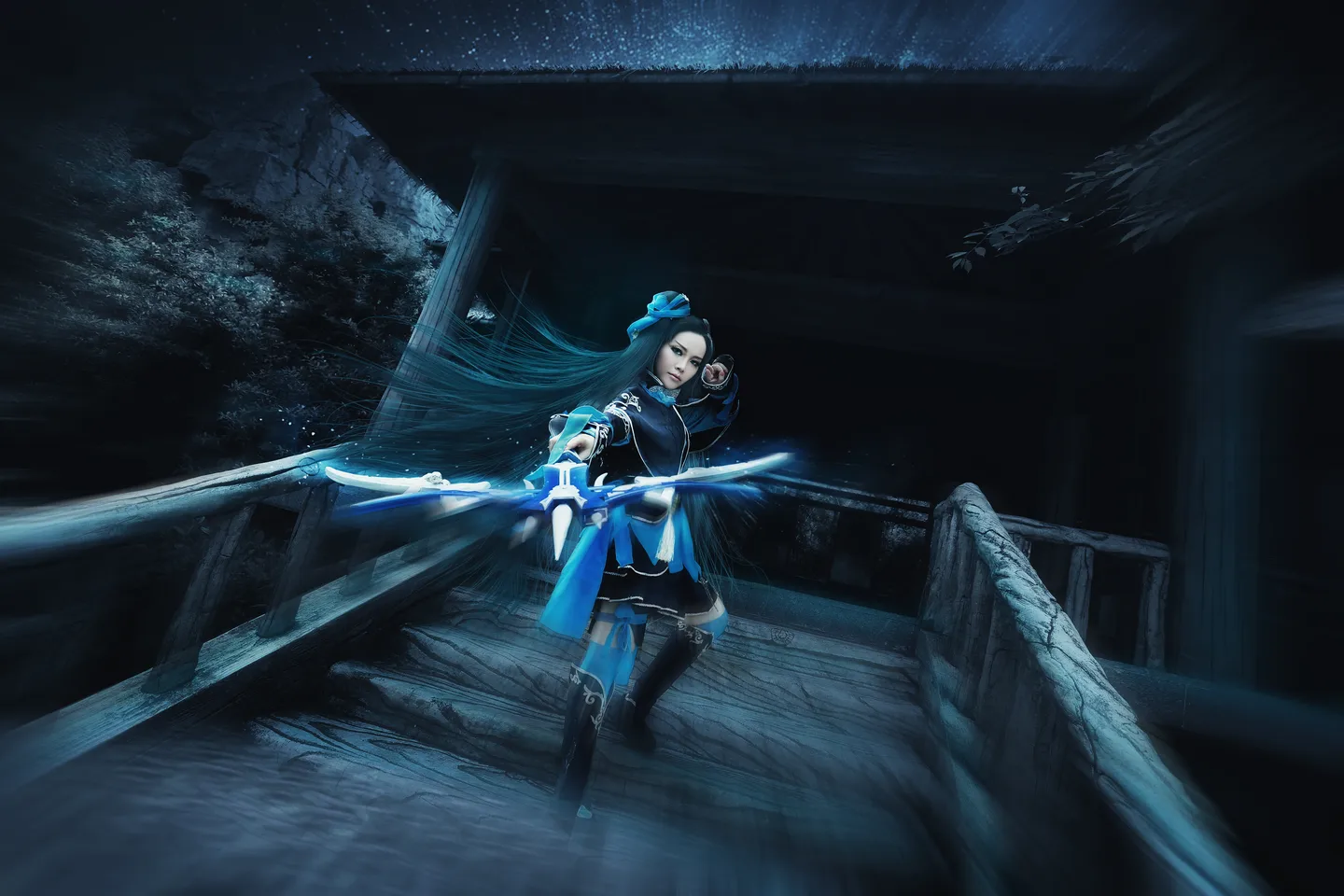 朵拉大神的作品真帅气,感激~~整幅图图很有出大招的特效场面感觉呢。青蓝色长发画得十分飘逸动人呀,脸变美了哇,大眼睛特别好看...
