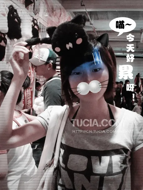在漫展上拍的,很喜欢头上那只猫。拜托亲美化下 !谢谢~~ 美化人物脸部,换一个好看的背景 也可以把人物卡通(漫画)化