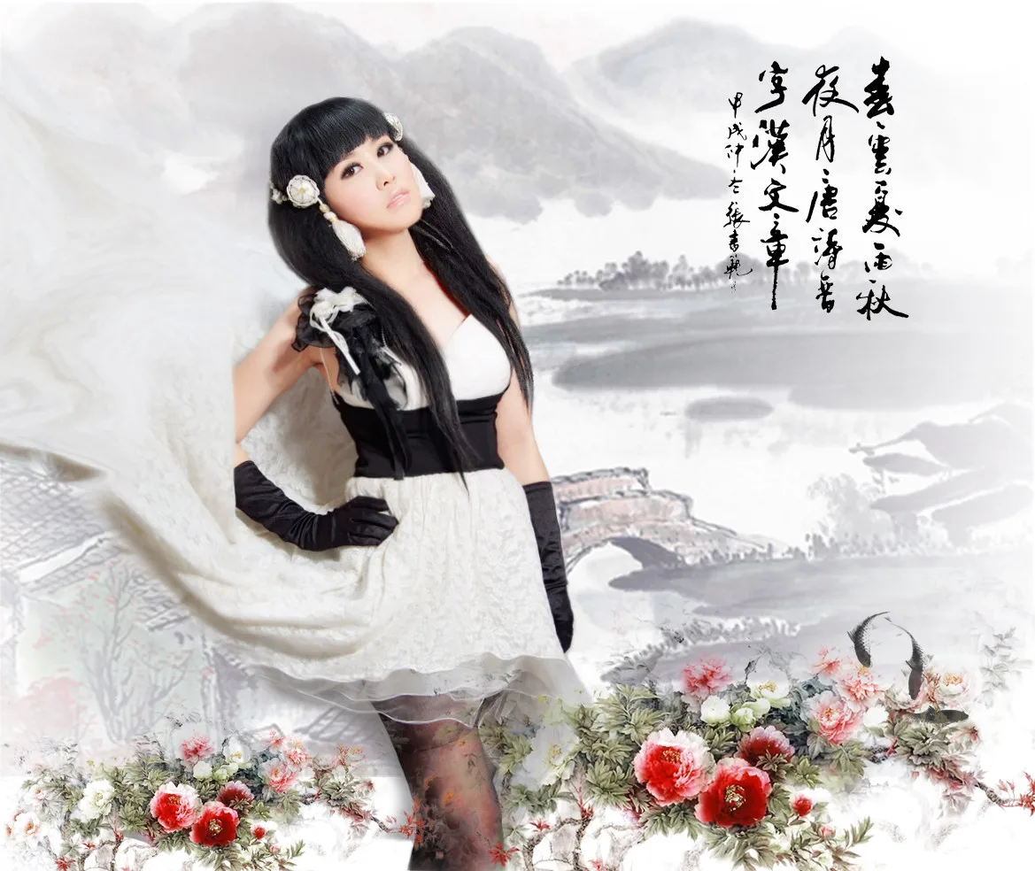 感觉这个时尚性感的女生和背景的文静素雅的中国风有点不搭,,嘿嘿。。只是个人感觉。。不要见怪啊~~