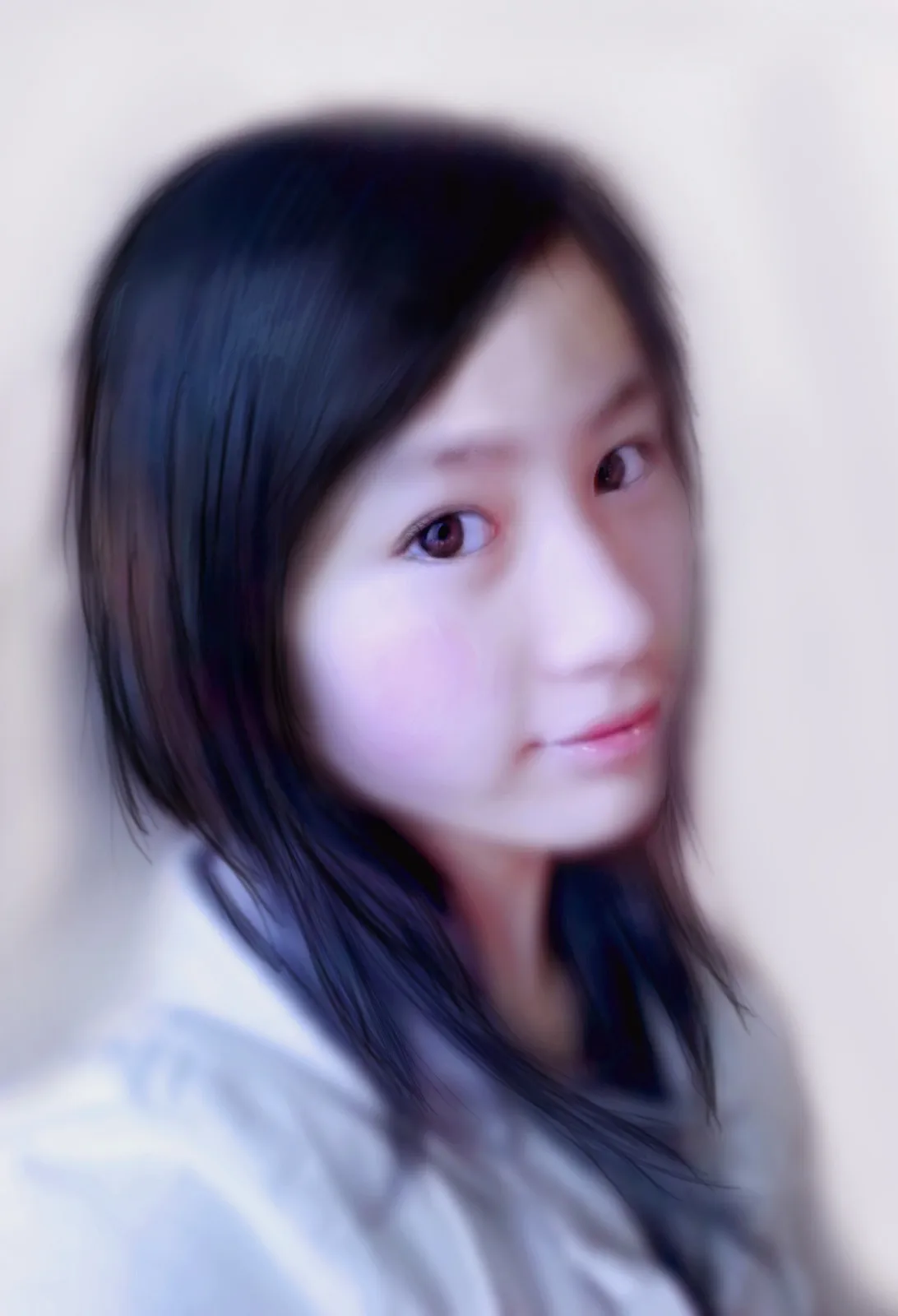 嗯嗯。很喜欢你帮我处理的那种感觉~ 这个也差不多按照那种风格吧~ 就是我不要蓝色的眼睛。换一种颜色试试看。谢谢啦。~