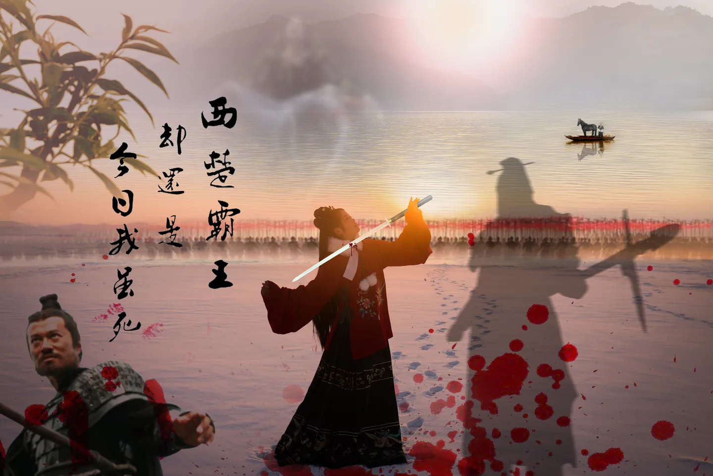 这虞姬自刎的创意真有趣,谢谢大神。画面上各种细节元素很丰富啊,特别是小舟上的乌骓马,瞬间让人脑补到项羽不肯过江东的场景哈哈