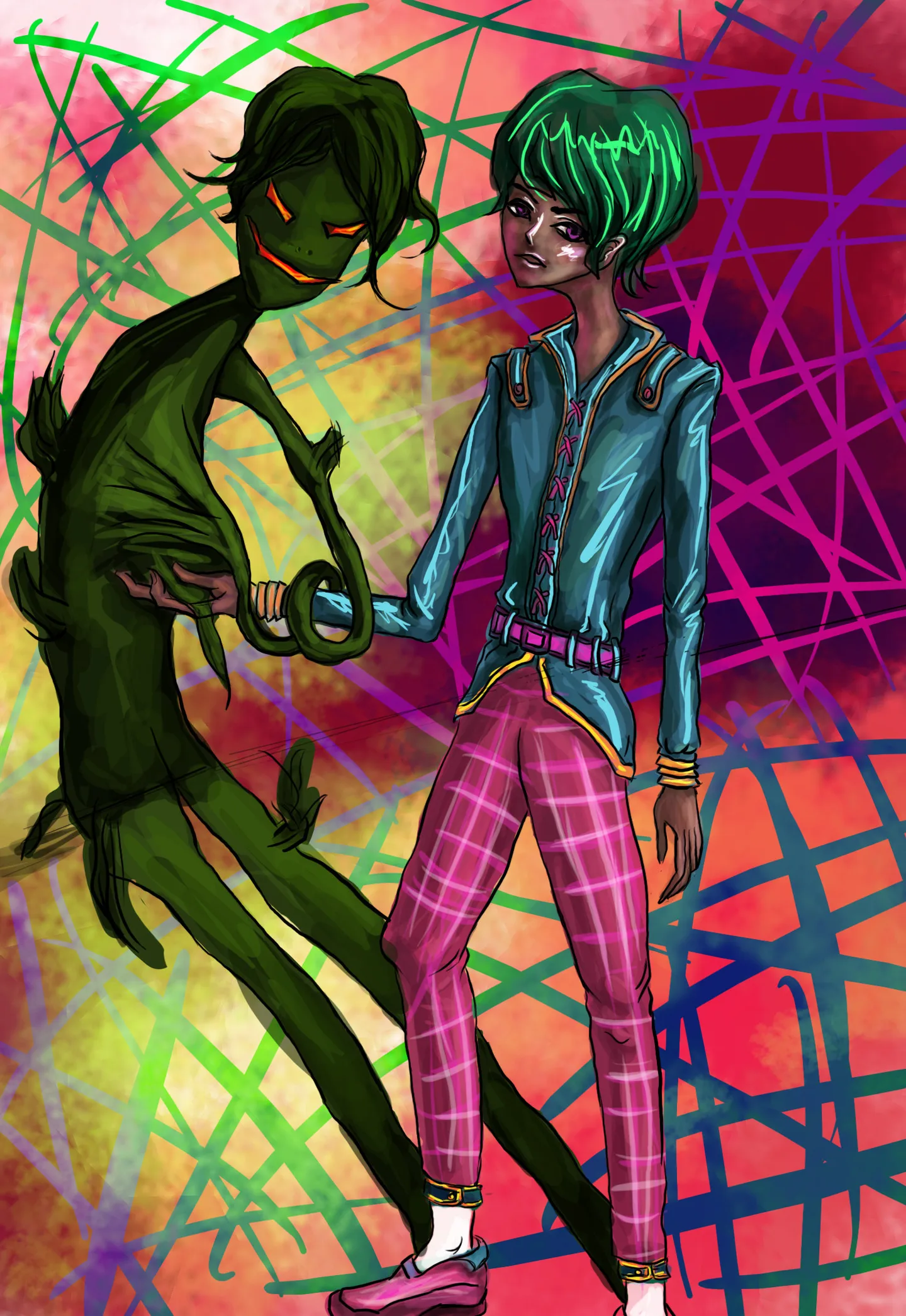 这张图是图主画的哦,没看懂后面是什么,感觉是影子演化出来的妖怪,所以就给画成这样了