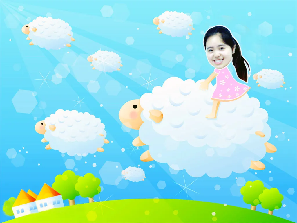 给我做成一个卡通的身子,头要真的,最后人往最右边移,这样能做成桌面,背景选成卡通可爱的背景,谢谢了,桌子和椅子做成卡通的,可以变换成其它什么好看的桌子和椅子,最好背景与人物相协调…… 用途:娱乐 艺术化:轻微艺术化 基调:典雅唯美 背景:稍作调整