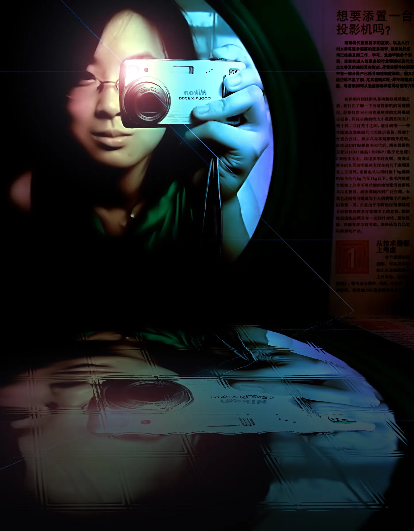 藕看懂了,原来是把镜子变成幻灯机镜头,蛮有想法的