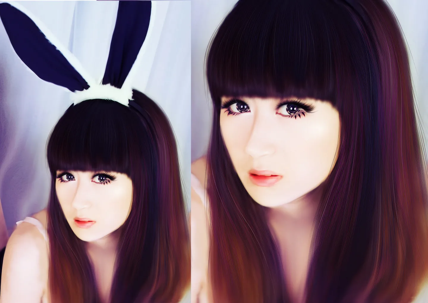 我爱小兔子 ··和朋友一起拍的啊·可是不方便吧朋友的照片放上来啊 ·所以 ···帮我美化背景和人物吧 ·最好就是画起来啊·嘻嘻 ·····