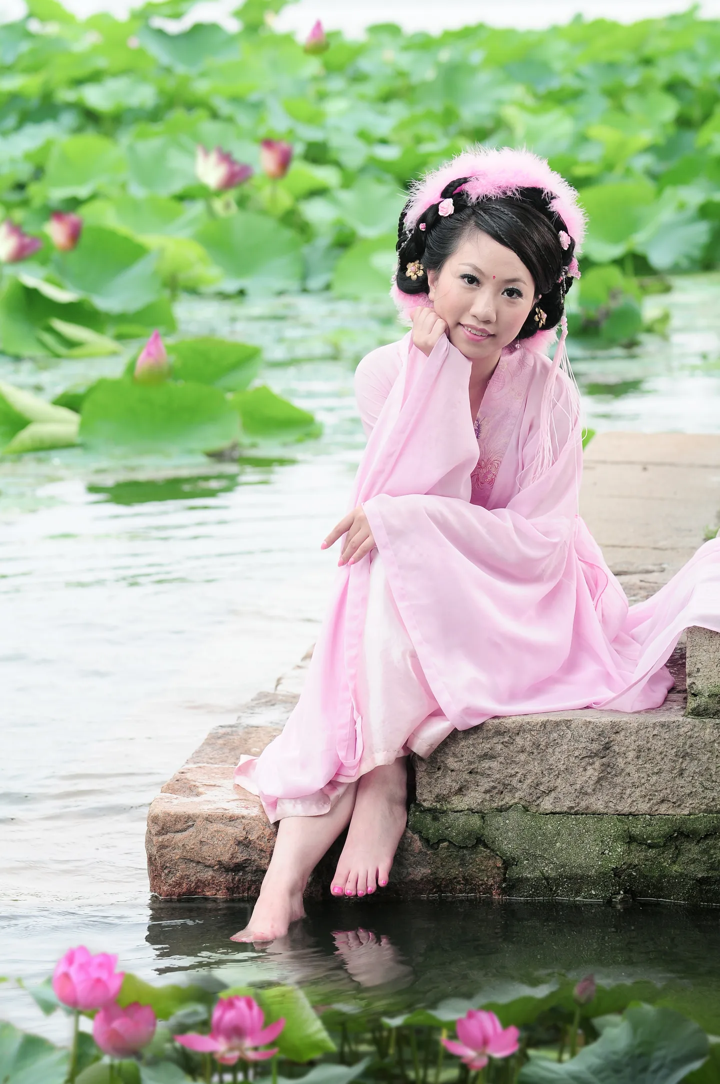 磨皮,最好P几朵荷花。 基调:欢悦明快的 艺术化:轻微艺术化
