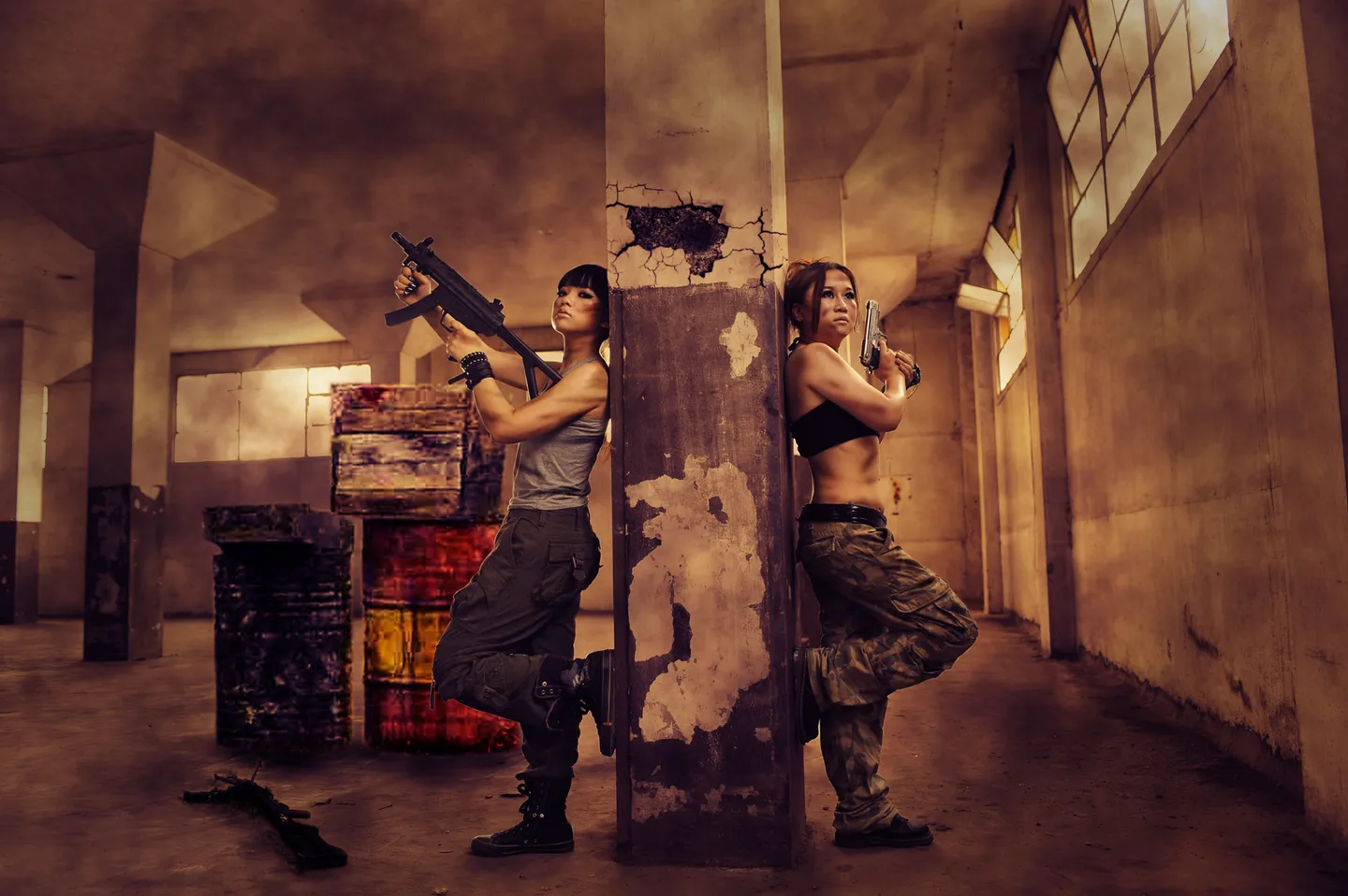 这个背景破旧的很好,就像那种CS伏击战……好看,人物脸部添加的脏痕更形象,很贴切