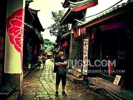 把后面那两个女的模糊化 主体是穿黑衣服那个男孩 我想用这张照片装框挂卧室里(这张照在云南丽江拍的) 希望能有古香古色的感觉 谢谢