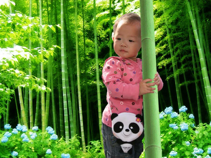 能否帮我把背景纯化,再配一个与BB表情相符的画面,比如说一片竹林,BB环抱一棵竹子等等,谢谢超人烘培师CNkuku了!相信你一定会给我惊喜的!