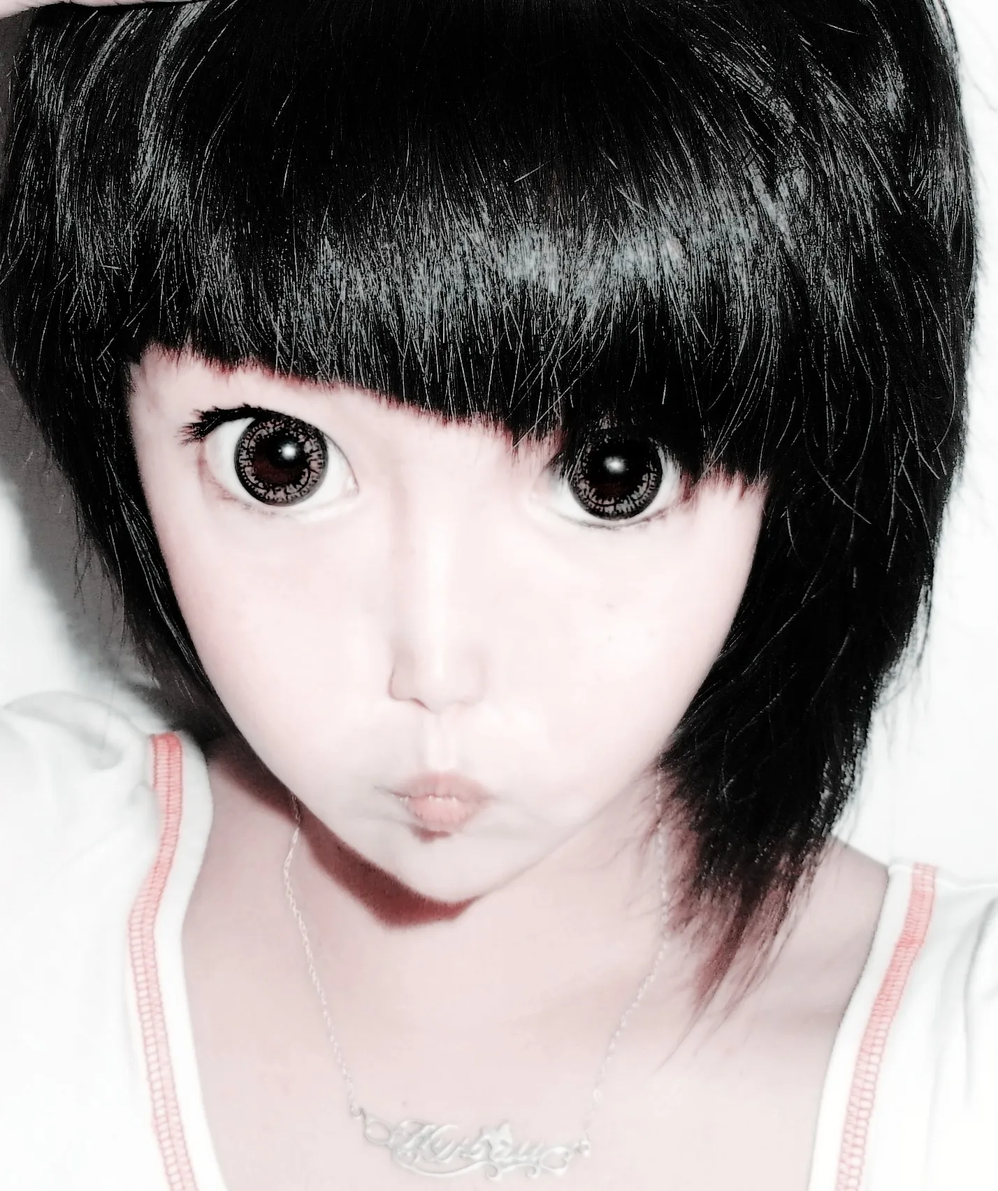 请把皮肤磨皮美白一下.要可爱的那种风格哦.别的,怎么美怎么P吧.最好能瘦点哈. 用途:娱乐 基调:欢悦明快的 艺术化:轻微艺术化 背景:稍作调整