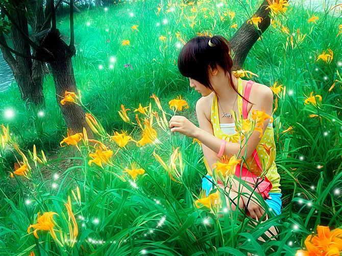 请大师帮我把照片处理的有梦幻的感觉