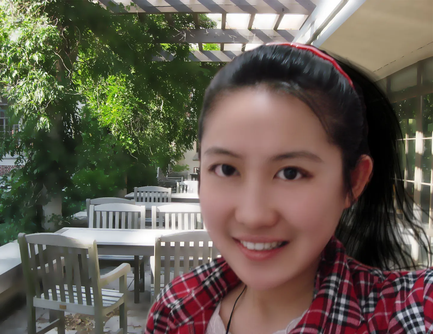 我是第一次上传照片 希望能变漂亮 看看我的潜力 23岁了 没经历过爱情 有点沮丧 因为近视 眼睛歪了 把眼睛校正 然后皮肤好一点 背景改成明亮阳光的比较好 加一个适合我的发型 以上要求不必都满足 我要求很少 只要变漂亮同时还像我就好