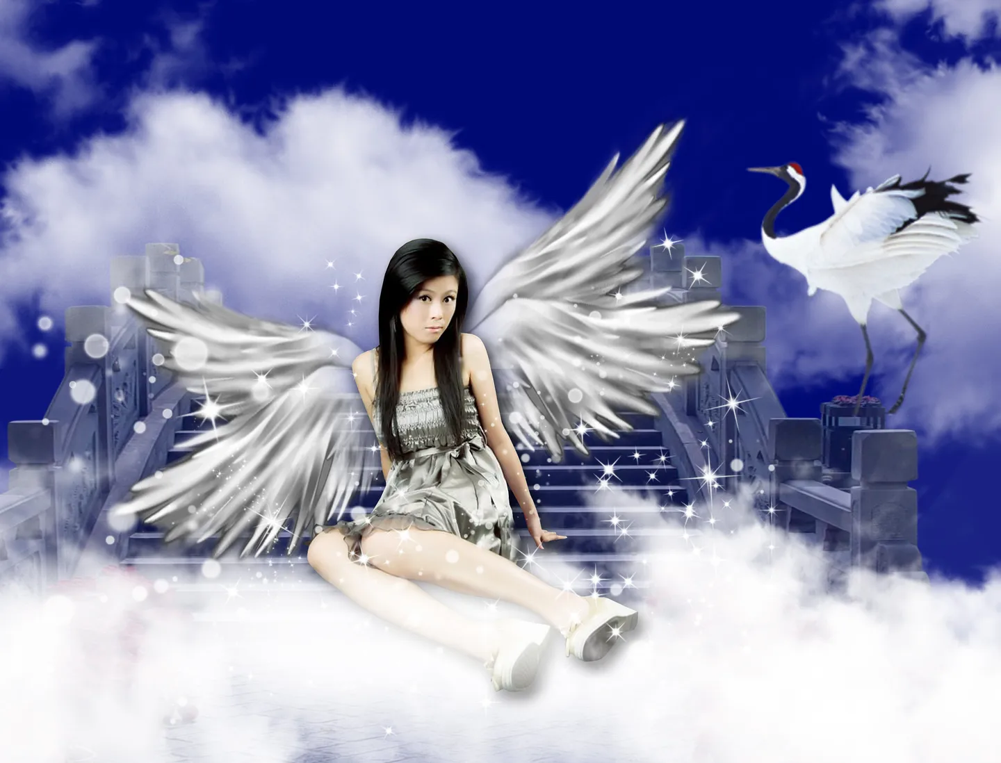 给人物换一个好看的背景 加上天使的翅膀 用途:家庭纪念