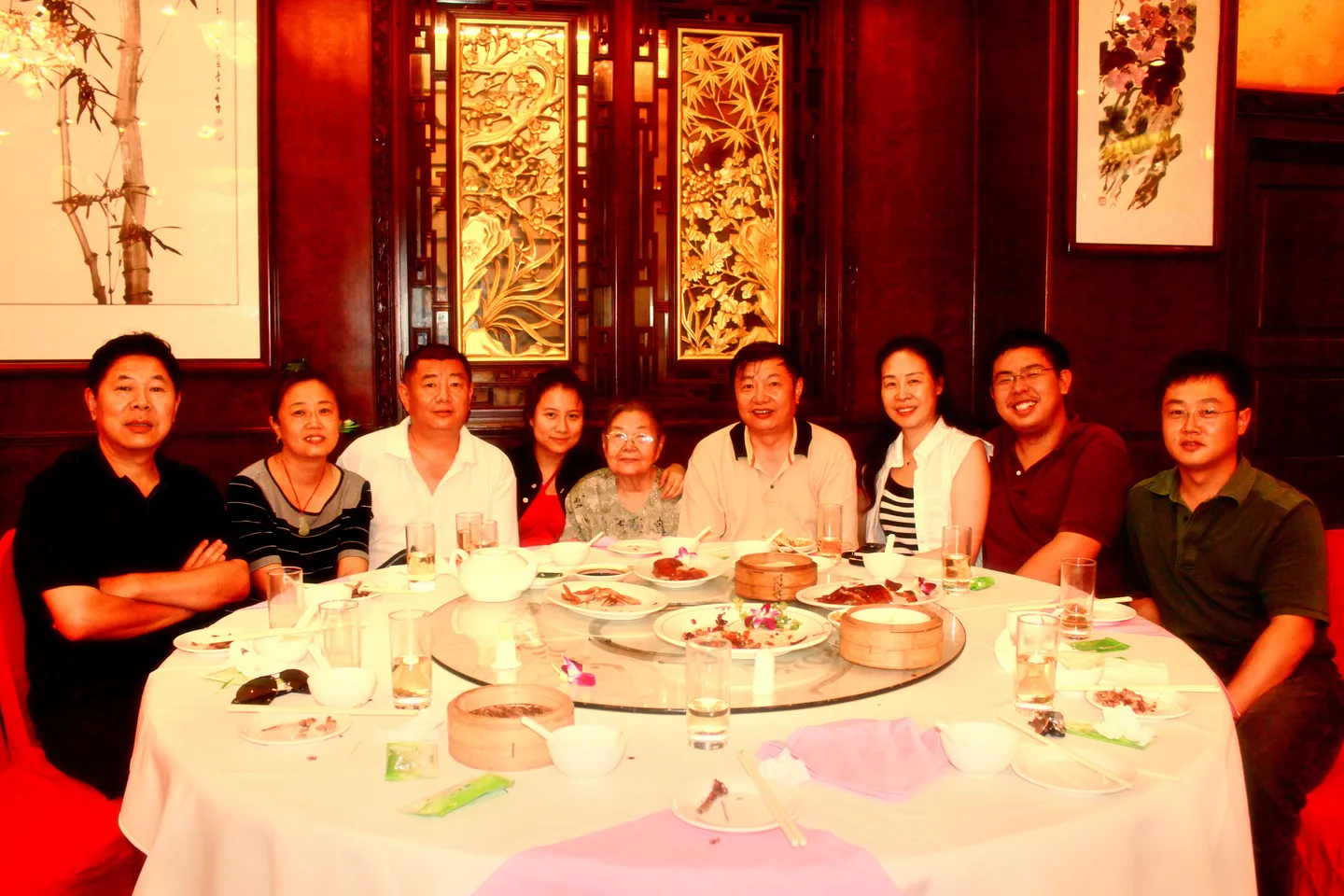 请换成油画效果,因为是全家福性质,请增加暖洋洋或者是欢快的气息。背景不用变换,也不用修改身材。面部请再保持清晰细节,可容易分别。谢谢!