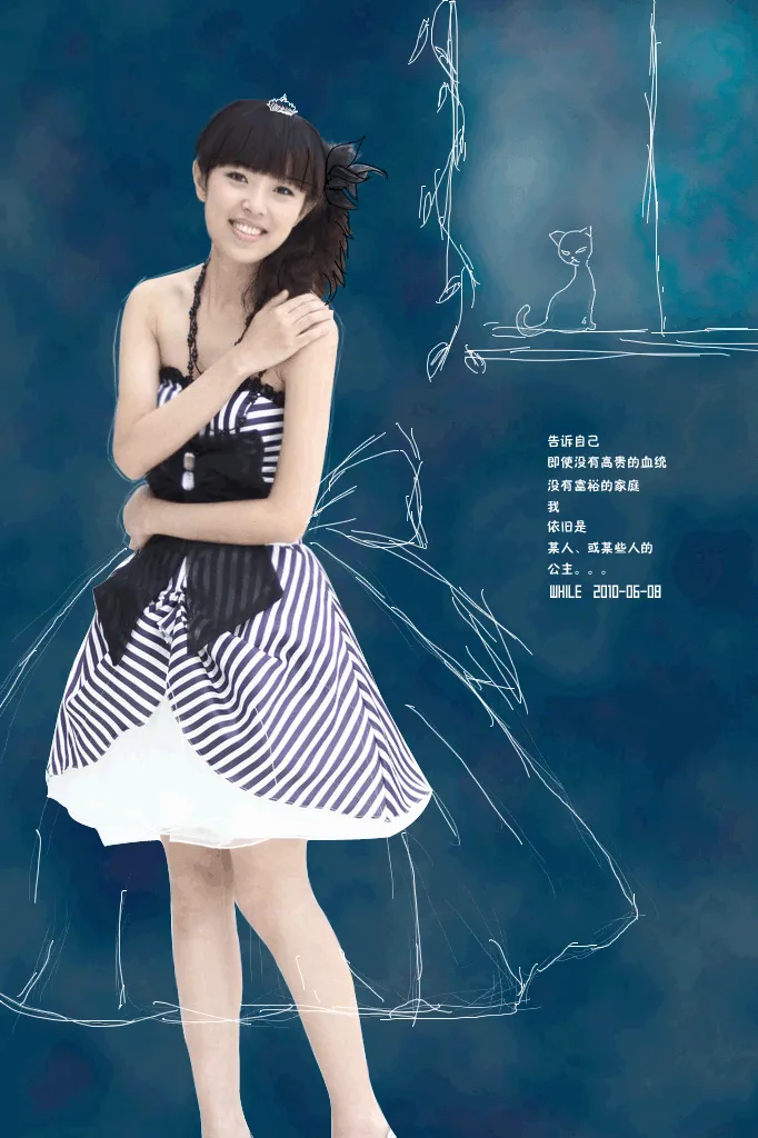 好不错。瘦脸了。背景自画的好Q噢!