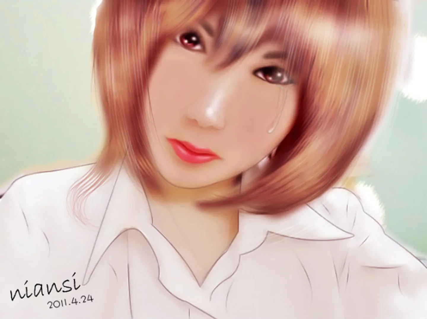 眼淚畫得不錯,眼睛有點糊了~